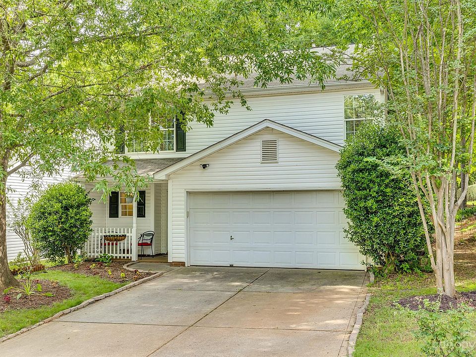 Just minutes from Lake Wylie in the popular community of Forest Oaks, awaits this beautiful two-story home nestled in a serene setting on a quiet street. This 3-bedroom, 2.5-bathroom home features wide plank wood and tile flooring, vaulted ceilings, and an open lower floor plan for multiple configurations. The kitchen and breakfast bar adjoin a cozy space that could work as an additional dining nook or sunny sitting area. Upstairs, a flexible loft space overlooks the great room. The cleverly designed primary suite features a large walk-in closet and full bath that creates a noise and privacy barrier between the primary and additional upstairs bedrooms. Outside enjoy the large patio and backyard landscaping with stone pathways leading to a firepit, hammock, and garden bridge. French drainage system installed. Lots of extras come with this home! LOW taxes, LOW HOAs, Clover Schools, quick access to great shopping, dining and lake recreation.