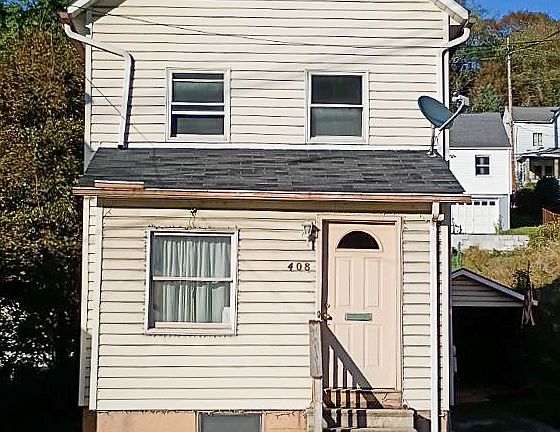 Why just rent when you can become a HOMEOWNER with rent-to-own? 2-story home with fully enclosed front porch. Newer vinyl plank flooring throughout the 1st level. Separate living room and formal dining room. Retro kitchen with wood cabinets includes fridge and gas oven range with hood. 2 nice-sized bedrooms upstairs; one with 2 closets. Large bathroom features updated vanity and mirror, combo tub/shower, and plenty of storage. Unfinished walk-up attic. Rear mudroom. Laundry hookups in the unfinished basement. Sloped back yard has shed and large sheltered deck. Driveway parking.