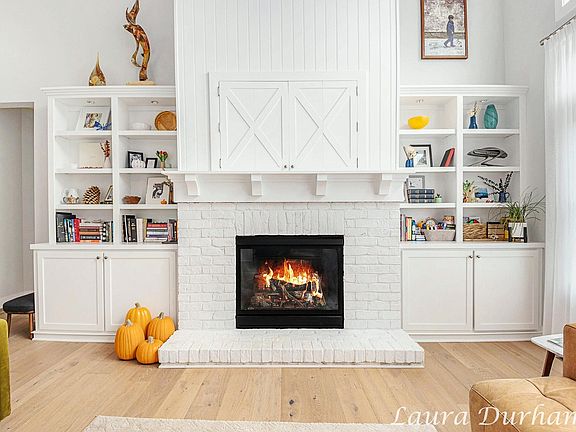 Gas log fireplaceSoaring ceilingsCozy sunroomBright cheerful kitchenStunning wall of windowsNatural light