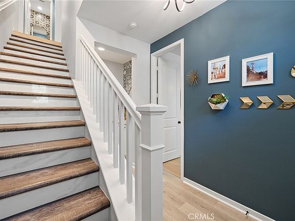 From the moment you step inside, you’ll be captivated by the thoughtful design and custom touches throughout. The main floor is an entertainer’s dream, featuring an expansive kitchen with a massive center island, sleek stainless-steel appliances, plentiful Shaker-style white cabinetry, a chic custom backsplash, under-cabinet lighting, and a spacious walk-in pantry. The open-concept layout flows seamlessly into the living and dining areas, with direct access to a large private patio—perfect for al fresco dining on warm California evenings.