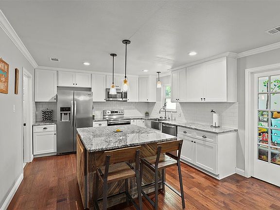 Gorgeous ranch style updated 4 bedroom, 3 bath home on tree lined street just blocks from desirable McKinney Square! This single story home is move in ready.Features energy efficient windows, roof installed February 2017, wood floors, granite and a chef's kitchen with decorative barn door! Remodeled kitchen has granite counters, stainless appliances, pantry, large island, farmhouse sink and soft-close shaker cabinets. Three living areas and a family friendly backyard! The fourth bedroom features it's own en-suite bath. Attention to detail can be found throughout this beautiful home with designer lighting and paint, crown molding,custom baseboards throughout and custom handmade rustic shelving in the front room.