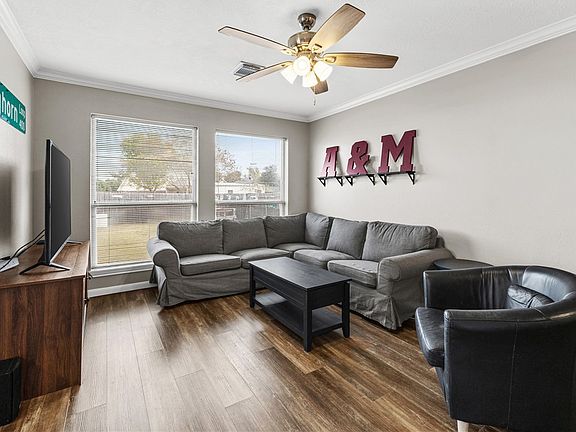 Beautifully updated 4-bedroom, 4-bathroom home just minutes from Texas A&M. The layout features one bedroom and bath downstairs and three bedrooms with private baths upstairs, making it ideal for multiple residents. A full January 2023 remodel included a gutted and rebuilt kitchen with new cabinets, vinyl plank flooring, and updated appliances. All bathrooms were refreshed with new vanities, showers, and toilets, and new fans throughout the house. For added convenience, the washer, dryer, and two refrigerators will all convey with the property. Additional highlights include a garage with an epoxy floor, a large backyard, and an oversized driveway offering excellent parking space. The home is just .3 miles (about a 7-minute walk) to a Texas A&M bus stop, 3–4 miles from the Texas A&M campus, and close to Jones Crossing with H-E-B, dining, coffee shops, and retail. The property is leased through July, providing built-in rental income and a fantastic investment opportunity near TAMU.