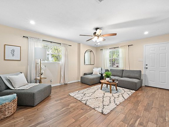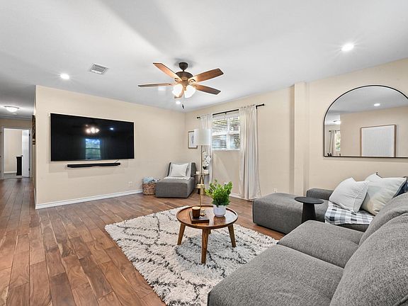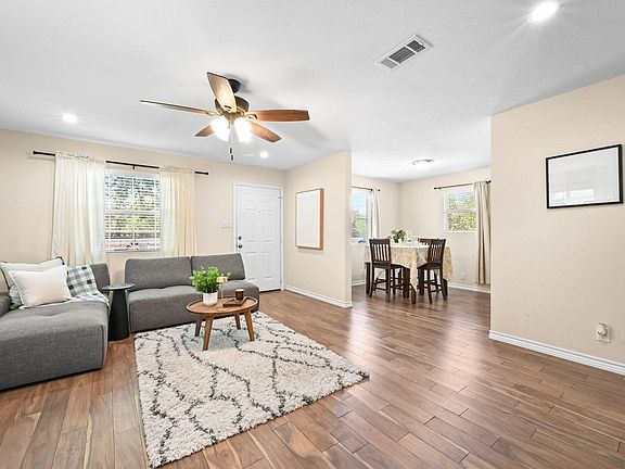 Experience the perfect blend of quality, comfort, and style in this freshly updated single-story Jim Walter-built home. Featuring a weatherproof exterior, fresh interior & exterior paint, & over $30k in recent upgrades, this home is move-in ready & designed to impress! Step inside to find 3 spacious bedrooms, 2 updated bathrooms, & 1,126 sq. ft. of bright, inviting living space. Every detail has been thoughtfully refreshed — from the new real hardwood flooring & carpeted bedrooms to the new baseboards, light fixtures, ceiling fans, & wood faux blinds throughout. The living & dining areas feature dimmer switches & new recessed lighting, creating a warm atmosphere perfect for relaxing/entertaining. The kitchen shines w/ a new sink, faucet, & updated cabinet knobs, plus a dedicated water connection for a dispenser. Each bathroom has been beautifully remodeled w/ new vanities, tubs, faucets, toilets, & backsplash, along with floor-to-ceiling tiled showers & handicap railings for added ease. Add'l updates include mirrored sliding closet doors, added shelving in all closets, & refreshed hardware & finishes throughout. A new storm door enhances the home’s inviting appeal, while the 10x10 shed in the backyard offers extra storage. Exterior highlights include gutters on the left side of the home, flood lights, & a 4-car concrete parking pad providing ample space for vehicles/guests. Enjoy lasting peace of mind w/ major upgrades such as a new A/C unit (2022), new roof (2024), & reinforced pier-and-beam foundation w/ added insulation for improved stability. Located in a welcoming, well-connected neighborhood w/ no HOA, this home offers the best of San Marcos living — minutes from Downtown San Marcos, the Outlet Mall, San Marcos River, & Texas State University, w/ easy access to New Braunfels, Austin, and San Antonio via IH-35. Freshly upgraded, thoughtfully designed, & perfectly situated — this San Marcos gem combines comfort, style, & convenience in one remarkable home!