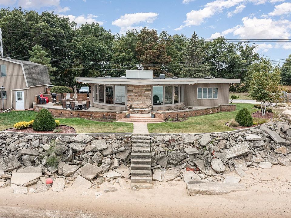 Welcome to this stunning waterfront home located in Bangor Township, offering a unique blend of space, serenity, and style! Set on a rare double-sized lot with 200 feet of water frontage, this one-of-a-kind property offers 4 bedrooms, including a spacious primary suite, 3 full baths, an updated kitchen, and main floor laundry. Natural light pours through the living room with its cozy fireplace. Enjoy outdoor living and sunsets on the beautiful patio or take advantage of the extra lot across the road, complete with additional parking and a second garage. With a spacious 2.5 car detached garage, partial basement, and over 1 acre of land, this unique property is a must-see!
