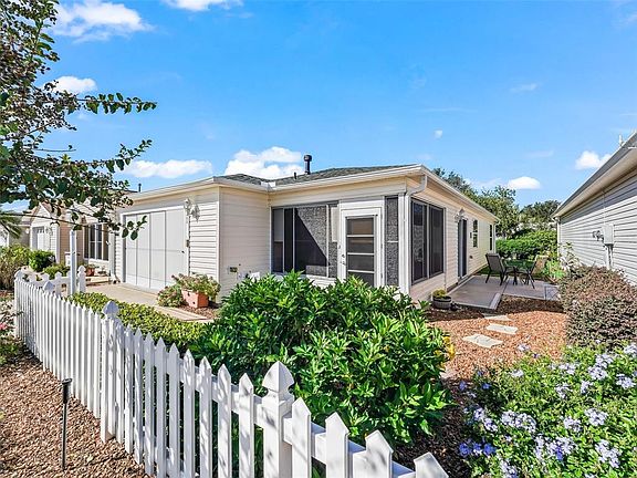 Welcome to 408 Rose Croft Terrace nestled in the heart of the Village of Belvedere. Arriving at this "TURNKEY" home you will notice the beautifully painted driveway, walkway and side patio complimenting an abundance of Florida Friendly Plantings surrounded by Rock Beds. The Enclosed Front Lanai features TILE Flooring, Roller Shades and Electric Fireplace for the "chilly" Florida evenings. As you step into this BRIGHT and AIRY "COLONY" PATIO VILLA featuring Volume Ceilings, you'll find a perfect blend of comfort and convenience. The spacious Eat-In Kitchen features Pull Out shelving, the ever-popular Solar Tube flooding the kitchen with natural light, a Pantry Closet and LVP Tile. The kitchen seamlessly connects to the living area making it easy to stay engaged with guests while entertaining. The Interior Laundry is a favorite of many. The Primary Suite provides a peaceful oasis and features an Ensuite Bath with Solid Surface Counter and a Large Walk-In Closet. The Primary Bath features a Shower only and the Tile Flooring coordinates with the Kitchen and Guest Bath. Additional Solar Tubes are located in the Primary and Guest Baths as are Pull Out Shelves in Bath Vanities. The Side Patio provides an abundance of space perfect for grilling and entertaining. The attached garage provides parking for both your car and golf cart. The Villas prime location offers easy access by golf cart to Lake Sumter Landing and Spanish Springs Town Squares for shopping, dining, golfing, recreation and entertainment. Additionally, the 466 corridor provides a plethora of businesses to meet all your needs including banking, restaurants, medical and a public library. Roof replaced in 2020, Gas Tankless Hot Water also replaced in 2020. HVAC replaced in 2023. BOND PAID. Come for a tour of this truly MOVE IN READY TURNKEY Home and make it your NEW ADDRESS
