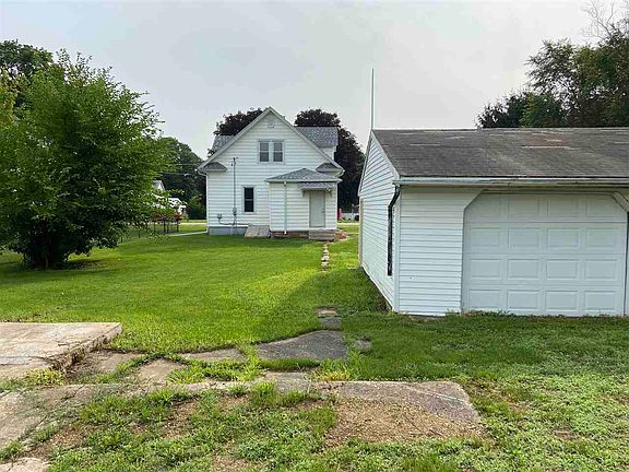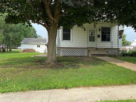 This 1.5 story home offers 3 bedrooms, 1.5 baths, large covered front porch and a detached 2 stall garage. The main level consists of living room, dining room, kitchen, one bedroom and a half bath. The other two of the home's bedrooms are on the upper level along with a large full bathroom. Roof and Gutters, 2019. Water heater, 2020. Furnace, 2021.