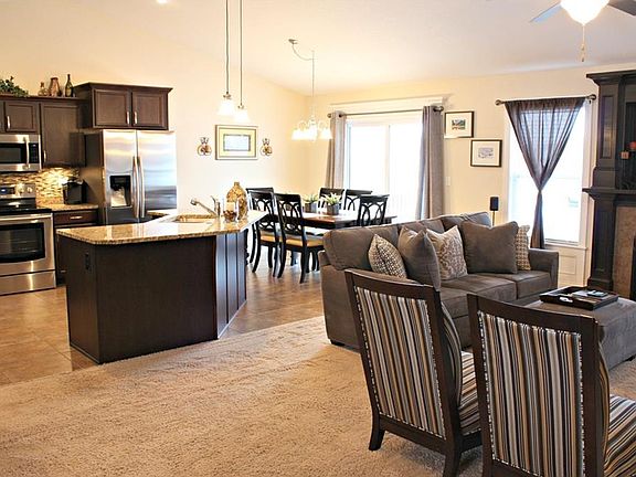 Impeccably ranch home in Siena Hills. Main level featuring vaulted great room kitchen plan with granite counters & tile back splash, under counter lighting, upgraded stainless steel appliances, direct vent gas fireplace with blower, sliders to the rebuilt deck with metal spindles, fenced yard, 3 bedrooms and full bath with master suite featuring 3/4 bath, double vanities and walk in closet. Lower level stubbed for bath and egress window. 3 car attached garage.