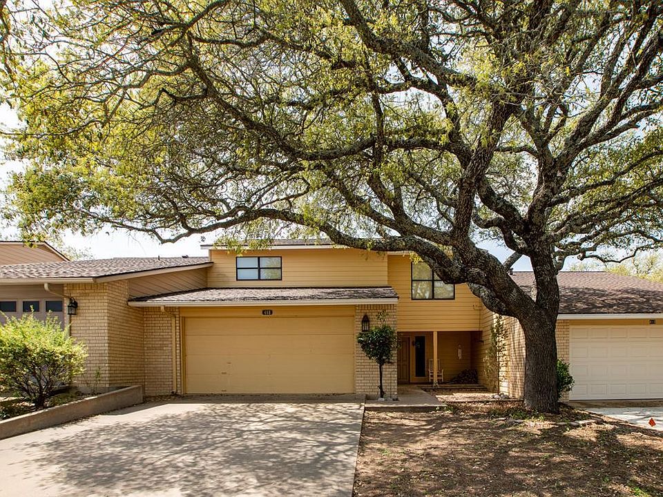Drive to the top of the hill and be welcomed to this beautifully maintained and spacious townhome located in the desirable Windcrest community designed for all ages. Nestled on the hill, this home offers easy access to downtown, HEB, Methodist Hospital, FHS, and a variety of restaurants and amenities. Say goodbye to the hassle of yard work or exterior maintenance, as the HOA takes care of all of it, allowing you more time to enjoy your surroundings. This large townhome features three spacious bedrooms, two full bathrooms upstairs, and a convenient half bath downstairs. Enjoy the lush yard with mature live oaks both in the front and back of the property, all just steps away from the community pool and clubhouse—ideal for relaxing and entertaining. The great room boasts soaring ceilings, a wood-burning fireplace, a wet bar, and an abundance of natural light. The tile-floored sunroom opens to the shady backyard, perfect for enjoying the outdoors in comfort. The galley-style kitchen with gleaming wood cabinetry flows seamlessly into the dining area, offering both functionality and charm. It has ample storage and a two-car garage. STRs are not allowed. Come see it today!