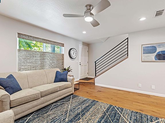Stunning home with over $140K in exquisitely designed upgrades throughout. Enjoy a superb kitchen with porcelain countertops, GE Profile stainless steel appliances, 5 gas burner range, at counter dining, & casual dining area overlooking the enclosed patio. Bathroom boasts a custom-built walk-in shower with floor to ceiling porcelain tile, custom-built two sink vanity, Kohler fixtures, and stone tile flooring. Half bathroom showcases stone tile flooring and includes a laundry area with custom cabinetry, large porcelain countertop, & LG washer and dryer. Primary bedroom has inset lighting with Lutron controls, floor sound barrier, and a custom closet barn door. Guest bedroom has inset lighting with Lutron controls, solid core closet doors, floor, ceiling & closet sound barriers, and a custom wall bed/desk. Additional amenities include recessed lighting, up down window shades, brushed nickel hardware, new electrical sub panel, storage room, one car garage with additional assigned space & close to an abundance of guest parking. Offers a spacious club house, two pools, two tennis courts, large green belt, and direct access to the Iron Horse Trail through a private gate. Centrally located, near downtown, dining, shopping, hiking/biking trails, top rated schools and easy freeway access.