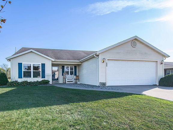 Beautifully maintained 4-bedroom, 2-bath ranch in a quiet Avilla neighborhood! This move-in-ready home features an open floor plan with vaulted ceilings, a decorative beam, and great natural light. The kitchen offers espresso cabinetry, stainless steel appliances, tile backsplash, and a breakfast bar that opens to the living room, perfect for entertaining. The spacious primary suite includes luxury vinyl plank flooring and a large walk-in closet. Outside, enjoy a new concrete patio, fire pit, and newer vinyl privacy fence for outdoor relaxation. Recent updates include a newer water softener, a newer water heater, and a 2-car attached garage. Conveniently located near parks, schools, and downtown Avilla, this home combines modern updates with small-town charm!