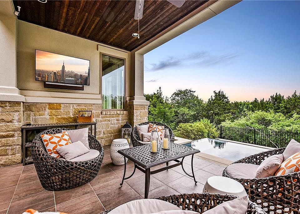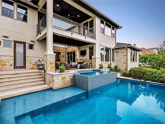 Summer is coming and you will love the stunning outdoor area at this home with sparkling pool and spa, covered patio and balcony, built in grill and courtyard dining all with amazing views and privacy. Parties will be a breeze as you open the 3 pane sliding doors in living and dining areas. The distinctive architecture both inside and out is beautiful and allows for easy alfresco living. Additional features include 2 offices, oversized mud/laundry room, pool bath, island with seating for 6 plus great room with stone fire place and hill county views.