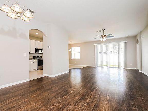 This modern and airy Seffner rental home offers three bedrooms and two bathroom in its single-story, 1,552-square-foot open floor plan. The sweeping living room boasts practical laminate flooring and a lighted ceiling fan. Home cooks will appreciate the amenities of the eat-in kitchen, including stainless-steel appliances, granite countertops, and plenty of room for barstool seating. The main bedroom features a window, lighted ceiling fan, and large walk-in closet. There's easily enough space for two people to start the day in the en suite bathroom, which provides dual vanity sinks, a walk-in shower, and a luxurious oversize tub. Relax or entertain friends on the large covered patio in the backyard. Call now to tour this Sunshine State beauty.