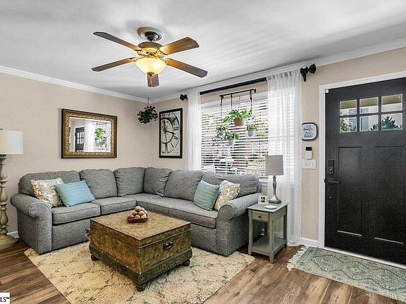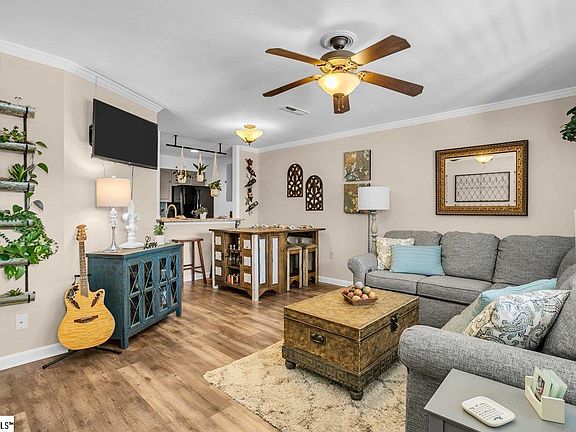 Welcome to this charming two-bedroom, one-and-a-half bath townhome located in the heart of downtown Greenville. Just steps away from shopping, dining, and entertainment. This home offers the perfect blend of convenience and comfort. Inside, you’ll find a bright and inviting living space, a functional kitchen with plenty of cabinet storage, upgraded cabinets with built in drawers, and a custom spice rack along with a cozy dining area. Seller converted the coat closet to a pantry giving you sufficient space for your cooking needs. Upstairs, both bedrooms provide ample closet space and natural light, while the fully renovated bath is conveniently situated between them. The half bath downstairs adds extra convenience for guests. Enjoy your morning coffee or evening unwind on the private patio, ideal for relaxing or entertaining or on the fabulous rocking chair front porch with views of downtown Greenville . With low-maintenance living and a prime location, this townhome is perfect for those looking to experience all that downtown Greenville has to offer. If this wasn't enough, this home is located in the Historic Heritage District. The exterior of the community was renovated in 2023 with new hardyboard, gutters, new porches, and new roofs. The city just announced the vacant shopping center across the street is going to include retail, restaurant, grocery, fitness, coffee, clothing and general convenience. The entire building will be updated on the exterior to match the growing downtown vibe.