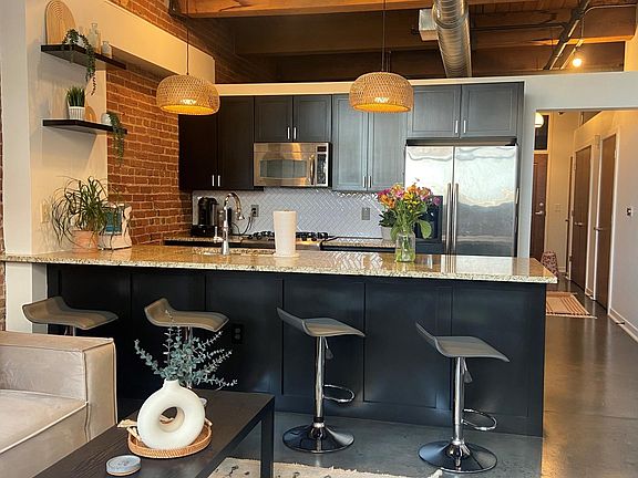 Spectacular end unit one bedroom with upgrades and lovely finishes for the furnished renter. All amenities are included along with utilities. Parking is optional and available for lease. Google fiber internet, gas range, stainless appliances and washer and dryer. Onsite fitness center, tanning, clubroom with full kitchen and theater. Privately owned and professionally managed by KC Loft Central.