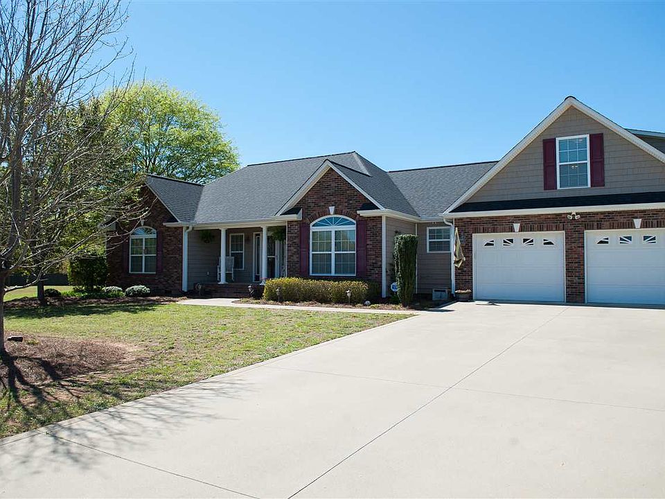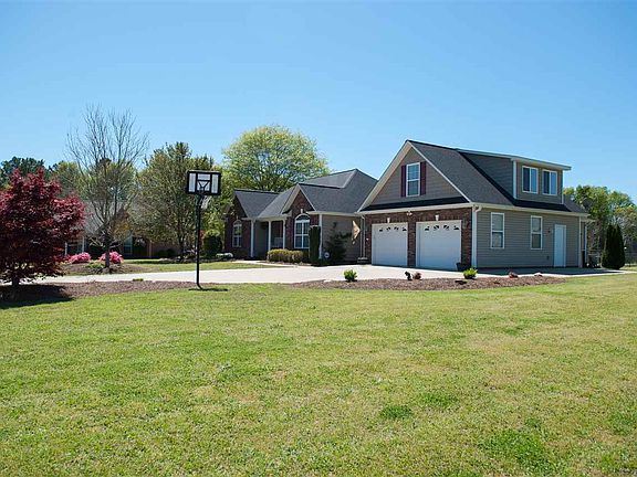 Hard to find, 1.39 acre lot in highly desirable District 5 Sedgefield Subdivision. 3BR 2 BA home with split floor plan sits on quiet cul-de-sac lot. Huge living room with floor to ceiling stone gas log fireplace. Hardwood floors throughout most of the home. Roomy kitchen with granite counter tops, ceramic tile floor, and large walk-in pantry. All stainless appliances including refrigerator to remain. Spacious master bedroom with trey ceilings an recessed lighting. Master bath includes jetted tub and separate shower with connecting large walk-in closet. Extra large bonus room with panoramic windows would make a great exercise room or second living space. Living room French doors open onto covered back porch and overlooks private backyard with heated in-ground pool for extended swimming season. 12x16 outbuilding with electricity and lofts for extra storage. 2 car garage with counter space and utility sink. New roof in 2014. Beautiful home in a quiet neighborhood yet still offering space and privacy, truly a rare find.
