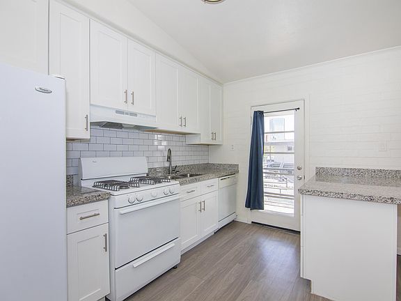 Lovely mid-century apartment in a fantastic location. This large 1 bedroom apartment has been fully remodeled and overlooks a private swimming pool in this quiet 7 unit apartment building. Kitchen has granite island & counters with stainless steel appliances, and lots of light, and balcony. Lovely pool / sitting area and covered parking.