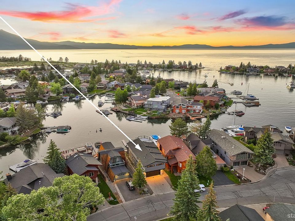 Discover serene waterfront living at its best in this impeccably updated 4-bedroom, 5-bathroom home situated in the desirable Tahoe Keys community. Spanning 2,621 square feet and built in 2018, this property offers a deep water boat slip and quick lake access, setting the stage for a remarkable waterfront lifestyle.Step inside to a welcoming open-plan living area on the first floor, adorned with hand-scraped hardwood flooring and a sleek modern gas fireplace. The built-in speakers and ample windows provide a captivating view of the channel, combining comfort with scenic beauty. The contemporary kitchen is equipped with custom cabinetry, quartz countertops, stainless steel appliances, a gas range, farm-style sink, and a walk-in pantry.The upstairs reveals a versatile second living space featuring a cozy gas fireplace and a wet bar complete with a beverage fridge. This area opens up to a back deck that includes a hot tub and stairs leading to a rooftop deck. Prepare to be awe-struck by the 360-degree panoramic views of the water and mountains, offering a perfect backdrop for relaxation or entertaining.Each of the four tranquil bedrooms on the second level includes its own en-suite bathroom, ensuring privacy and convenience. The primary suite is highlighted by a jetted tub, dual sink vanity, custom tile work, heated floors, and a sauna.Residents of Tahoe Keys enjoy exclusive access to tennis courts, pickleball, indoor and outdoor pools, private beaches, and enhanced security. This home is not just a residence but a gateway to a lifestyle filled with leisure and luxury. Embrace the opportunity to make this stunning lakeside haven your new home.