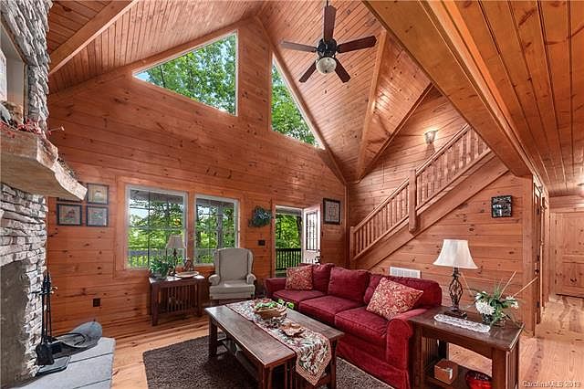 Be the first to call this cabin home! Private log home at 4000-foot elevation with long-range views available! This custom home has never been lived in & is being sold mostly furnished! An open floor plan with vaulted tongue & groove ceilings, floor to ceiling stone fireplace in the living area, a large kitchen with hickory cabinets, stone accented breakfast bar. Tile backsplash & counters. A spacious dining area for those lrg family retreats to the mountains. The main level includes a master bedroom & bath. Master bath includes tile floors & tile surround in the tub. Main level laundry room w/sink. Woods floors in the living areas, tile in the baths, & carpet in the bedrooms. Large loft area complete w bar & sink, room for the games, & overlooks the cabin below. Guest bedroom off the loft. The large master bedroom has its own private balcony. Master bath has a 2 person jet tub, tile shower, & 2 vanities. Many upgrades throughout! Similar homes in the area offer great rental potential!