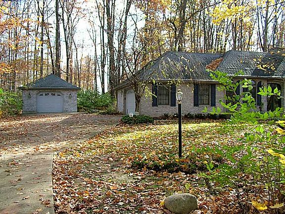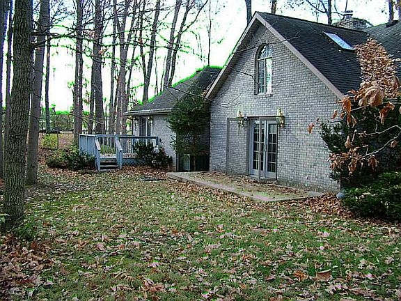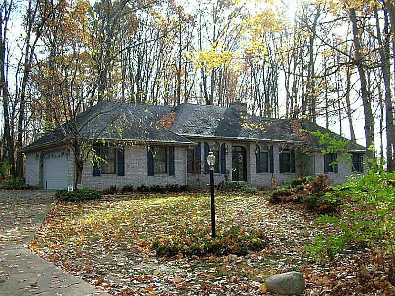 Beautiful brick home, surrounded by mature trees. One floor plan with upstairs loft overlooking the great room. Sq ft includes loft. Many sky lights provide natural light. Great room has cathedral ceilings, a two-way fireplace and french doors leading to the patio. The kitchen has an abundance of cherry cabinets, wet bar, stainless sink & all appliances, a breakfast nook between the kitchen and the laundry room. The dining room has long windows w arched transoms. Living rm/office is just inside the front door features a two-way fireplace. The large master bedroom, has trayed ceiling, walk-in closet & doors leading to a deck. The large master bath is immediately off the mbedroom. Attached 2-car garage & detached one-car garage adjacent. Invisible dog fence with 2 collars.