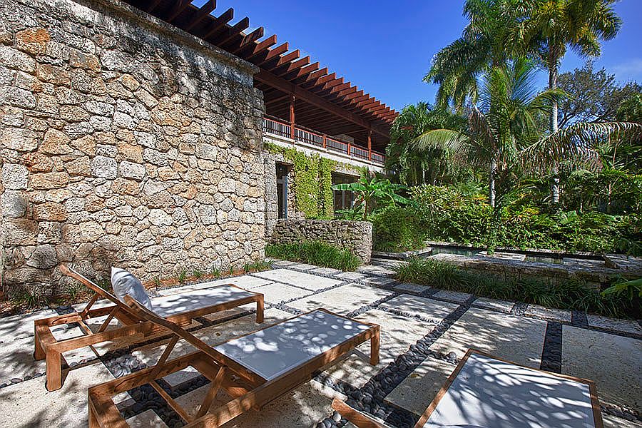 Max Strang s RockHouse, a masterwork in which the spirit of tropical modernist architecture and a Balinese aesthetic, merge to craft a tranquil experience synonymous with living among the treetops. From afar, the two-story residence resembles a floating structure, surrounded by lush vegetation and an abundance of Poinciana s and Palms. Through the use of rich, earthy textures and natural and local materials, RockHouse brings the outdoors in. Tall, dark ebony- framed windows and polished concrete floors inhabit the longhouse-inspired open layout. The kitchen, dining and living room occupy one side of the ground floor while the grand master suite occupies the other. The second floor is comprised nearly entirely of terrace spaces with wood and steel railings and an industrial steel roof.