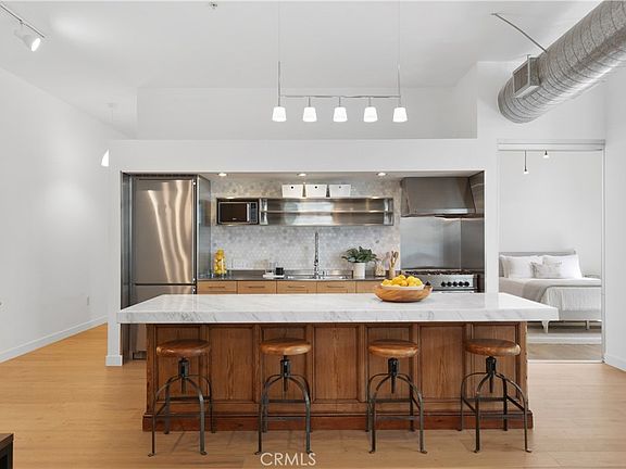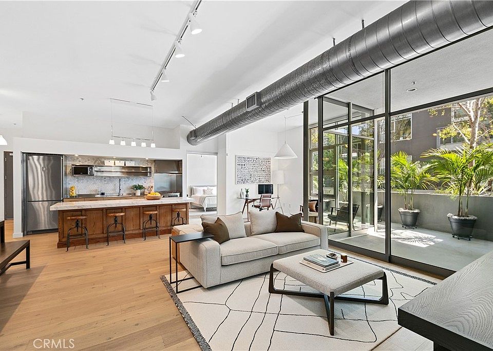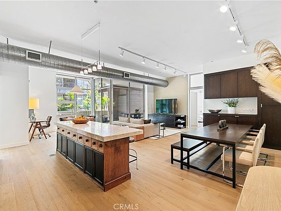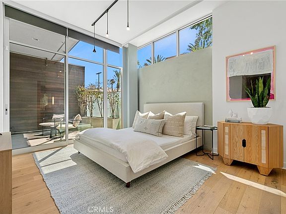 Highly coveted Marina Del Rey architectural loft. This rare ground floor unit is one of the largest floor plans in the Gallery Lofts development. Boasting high ceilings, new wood floors, custom media and dining cabinets, and venetian plaster entertainment space, this open floor plan has it all. The kitchen features sleek, high-end, European appliances including a Miele refrigerator and Bertazzoni oven range. The guest bedroom includes a custom built, spacious closet that was integrated with the frosted sliding doors to give true privacy. Off the entry and connected to the guest bedroom is the second full bathroom with custom cabinets, sink, and mirror. The primary bedroom has a spacious, open walk-in closet, venetian plaster detail, high end lighting fixtures and roller shades. The primary bathroom includes a soak tub, walk in shower, and custom-built walk-in closet. Fleetwood sliding glass doors open to a spacious patio deck showcasing an abundance of natural light, beautiful, stained wood wall, and frosted glass privacy fence. Perfect for entertaining or relaxing. This unit comes with two tandem parking spaces in the underground garage, community trash and recycling, barbecue and fireplace common areas. Minutes from some the best restaurants, shops, grocery stores, LAX, and more.