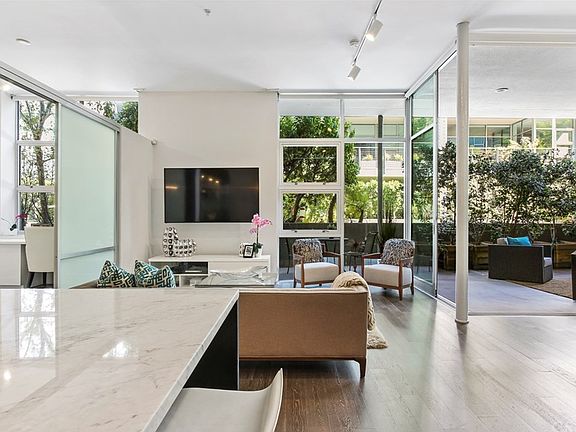 STUNNING AND SOPHISTICATED 2+2 INDUSTRIAL LOFT BUILT IN 2011 - LOCATED IN THE HEART OF MARINA DEL REY'S HIGHLY COVETED ARTS DISTRICT. MODERN SLEEK INTERIOR FINISHES ACCENTUATE THIS FIRST FLOOR UNIT, ABUNDANT WITH UPGRADES AND FEATURES NOT FOUND IN OTHER SIMILAR UNITS. FEATURES INCLUDE AN OPEN CONCEPT DESIGN, 11 FT HIGH CEILINGS WITH BUILT IN SPEAKERS, AND FLOOR TO CEILING WINDOWS EQUIPPED WITH MOTORIZED WINDOW SHADES. TOWERING 11FT FLEETWOOD SLIDING GLASS DOORS OPEN TO A PRIVATE ZEN PATIO AREA WITH NEW RESEALED FLOOR, CREATING AN EXPANSIVE AND SEAMLESS BLEND OF INDOOR-OUTDOOR SPACE. THE ULTRA MODERN KITCHEN IS A CHEF'S DREAM WITH AN IMPRESSIVE CUSTOM BUILT-IN CARRERA MARBLE ISLAND WITH TONS OF STORAGE SPACE, LUXURY EUROPEAN CABINETRY, EUROPEAN STAINLESS STEEL LIEBHERR REFRIGERATOR, BERTAZZONI GAS RANGE, AND MIELE DISHWASHER. SPACIOUS MASTER BEDROOM FEATURES A PARTIAL WALL FOR ADDED PRIVACY, A PRIVATE MASTER BATHROOM WITH AN OVERSIZED SOAKING TUB AND SEPARATE SHOWER. THE SECOND BEDROOM CONTAINS A GORGEOUS HIGH-END WHITE LACQUER BUILT-IN WARDROBE UNIT, DESK AND PLENTY OF CABINETS FOR EXTRA STORAGE. BUILDING AMENTIES INCLUDE A LUSH COMMON AREA WITH 2 OUTDOOR KITCHENS, PLENTY OF SEATING, A TWO-SIDED FIREPLACE AND WIFI. NO ATTENTION TO DETAIL WAS SPARED IN THIS EXTRAORDINARY UNIT, IDEALLY LOCATED 5 MINUTES TO THE 405 FWY, 15 MINS TO SANTA MONICA, 15 MINS TO LAX AND A SHORT DISTANCE TO THE MARINA MARKETPLACE, ABBOT KINNEY, AND VENICE BEACH.