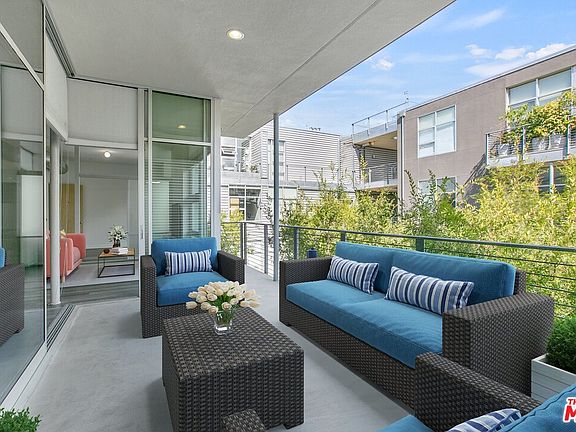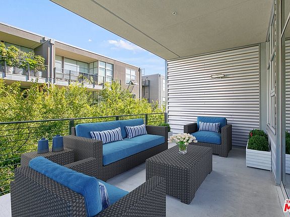 Open and spacious modern industrial loft in the heart of the Marina del Rey arts district. High ceilings throughout, with floor to ceiling windows and 11 foot Fleetwood sliding doors let in an abundance of natural light. The open living space leads to an expansive patio, creating true California indoor/outdoor living. Great kitchen island with room for up to 4 barstools creates extra seating in addition to the dining area. The wall to wall counter space andcabinets provide plenty of kitchen storage. Luxury European stainless steel appliances include a Liebherr refrigerator, Bertazzoni gas range, and Miele dishwasher. Two oversized bedrooms, each with adjacent beautifully tiled bathrooms with high-end fixtures. The spacious master bath features a deep soaking tub and separate shower. Gallery Lofts offer a serene outdoor space with a double-sided fireplace and lounge area, as well as two outdoor kitchens.