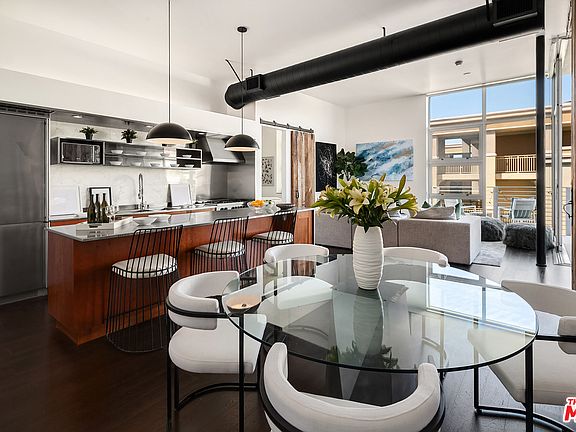 Beautifully updated large and open penthouse loft located in the desirable Marina Arts District. This top floor unit is flooded with natural light, showcasing floor to ceiling windows and large sliding doors that seamlessly open to a generous patio. The kitchen is stainless steel equipped with a Bertazzoni gas range, Liebherr refrigerator, and Miele dishwasher. Large master bedroom includes a walk-in closet, and en-suite bath features an oversized soaking tub with a separate shower. Unit comes with central AC/heating, in-unit washer/dryer, garage storage, and two covered parking spaces. Building amenities include an outdoor community lounge area with fireplace, outdoor kitchen, and ample guest parking within walking distance to shops, restaurants, Equinox, Marina Marketplace, and more. Enjoy SoCal indoor/outdoor living at it's finest!