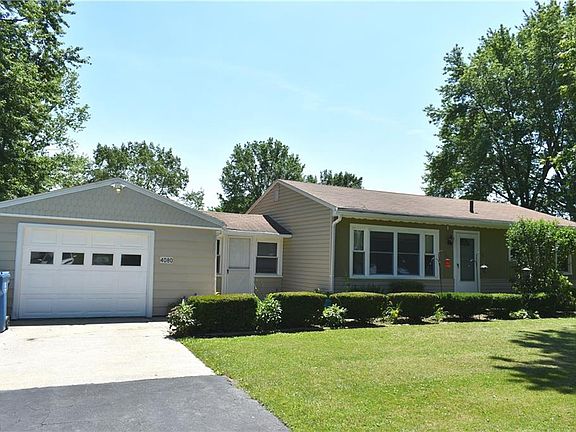 Charming 2 bd/1 ba ranch home, nestled on almost half an acre, offers numerous amenities and updates throughout! Welcoming living room features hardwood floors, ceiling fan, and large, newer window. Spacious, eat-in kitchen presents extensive cabinetry, all appliances, reverse osmosis, ceiling fan, and access to breezeway/laundry room. Bright and cheery breezeway/laundry room highlights ample storage space, access to front patio, and glass door leads to sunroom. Inviting sunroom boasts numerous windows and access to backyard! Office showcases built-in desk and shelving. Two, generous sized bedrooms with hardwood flooring and ceiling fans, and full bath complete main living space. Oversized, one car garage offers ample storage space, workshop area, and additional storage room with walls of shelving and glass block windows. Storage shed with electricity and motion light. Tranquil, level backyard offers potential for creating your own serene oasis! Updates include newer electrical panel (2012), sump pump/fiber tank (2012), mechanicals (2012), living room window (2015), garage storage room, garage door opener, and newer vinyl siding. Truly must see to appreciate!!