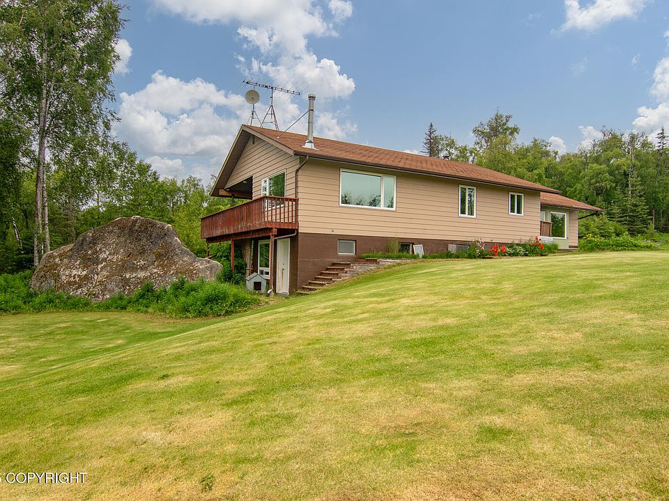 The legal address describes this property perfectly, Heavens View! You will love this 25.58 acre property. The yard has literally been partially used as a golf area that overlooks a breathtaking Mountain view. The home has high ceilings, a gorgeous Tulukivi soapstone stove and a large quonset insulated garage with a bathroom plumbed in. There are no CCRS for this property so if you have dreamedof running a cabin rental business, this property would be absolutely perfect for that with lots of room to build.