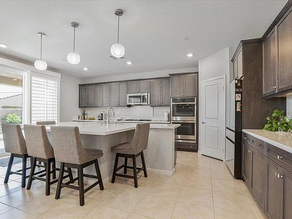 LOWEST PRICE in Paradiso Community! Gorgeous 2021 home w OWNED SOLAR PANELS in a gated community exudes refined comfort and thoughtful design. From the moment you enter, you're greeted by an expansive open floor plan that effortlessly connects the living room, dining area, and kitchen. The living room features a modern fireplace that adds warmth and ambiance, while large windows framed with custom shutters offer both privacy and style. This 4 bedroom, PLUS an office/den/5th bedroom, 3 full bathrooms PLUS a powder room has it all for you!The kitchen is a chef's dream, anchored by gleaming white quartz countertops that stretch across a generous island and wrap around sleek cabinetry. Stainless steel appliances and designer fixtures complete the space, making it as functional as it is beautiful. Throughout the home, custom shutters are a consistent design element--tailored to each window, they add a layer of sophistication and timeless charm. Whether closed for a cozy evening or opened to welcome in the California sunshine, they elevate the aesthetic and enhance energy efficiency. Step outside to a private patio or landscaped backyard, perfect for relaxing or entertaining. This home blends luxury, practicality, and a touch of personal flair in every corner.