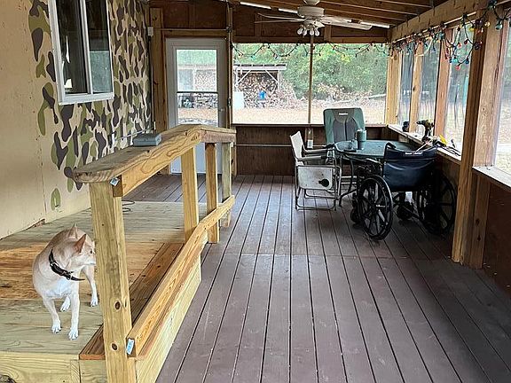 Welcome to this beautiful 1-bedroom, 1-bath wood-frame home, built in 2013, nestled on 2 full acres of land in a small town at the heart of the Apalachicola National Forest. This tranquil setting is perfect for those seeking comfort, privacy, and an outdoor lifestyle. Ideal for hunters and fishermen, the property offers close proximity to excellent freshwater fishing and is located on a dead-end road, ensuring peace and quiet. Designed with convenience and energy efficiency in mind, this home features thoughtful details throughout. Relax on the large, screened-in front porch, capturing the breeze and providing the perfect spot for unwinding after a day of outdoor adventures. Inside, the open-concept living, kitchen, and dining area is perfect for entertaining or everyday living, offering a cozy yet spacious atmosphere. The home is equipped with handicap provisions, including a walk-in shower, ensuring accessibility for everyone. Upgraded insulation throughout helps keep energy costs low, and the energy-efficient split-unit system guarantees comfort year-round. The property also boasts a large, oversized workshop, ideal for boat storage or woodworking projects, with motion-activated lighting to enhance practicality and security. A small shed with electricity provides additional storage, while a dedicated fish cleaning station caters to the outdoor enthusiast. For added convenience, the property includes camper hookups with 50-amp service, a septic clean-out connection, and water access—perfect for accommodating guests or enjoying outdoor adventures. The land is beautifully landscaped with azalea bushes and offers plenty of open space, ideal for family gatherings, outdoor activities, or future expansion. Don't miss the chance to own this private, move-in-ready retreat with endless potential in a peaceful, nature-filled location.