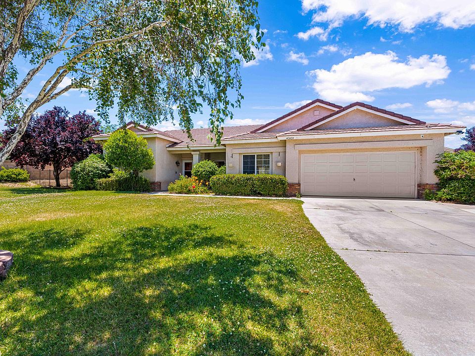 Stunning pool home located in West Palmdale in the gated Stonegate community.  A rare 5 bedroom home that has upgraded wood grain tile flooring and a remodeled kitchen.  The kitchen has Bosch appliances and refinished cabinets.  The master bedroom is spacious with plenty of room for a king sized bed and furniture.  The Master bedroom has an ensuite bathroom with separate shower and tub and his and her sinks.  In the back of the house there is a full bathroom with direct access to the pool.  Outside you have a covered patio and a gorgeous pool and spa.  There's RV access and so much room to entertain in the backyard.