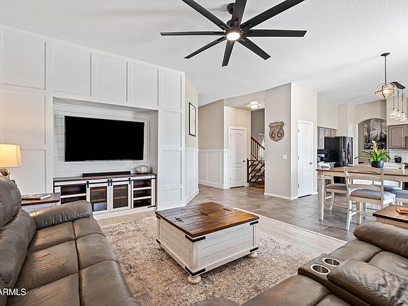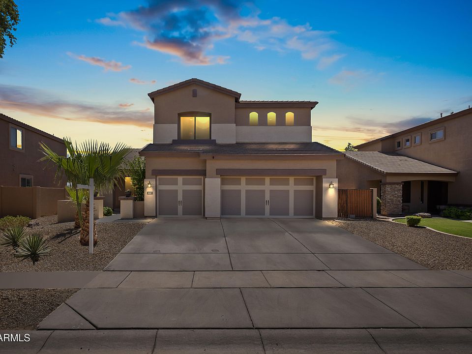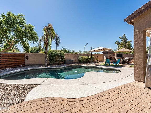 Welcome to this move in ready 5-bedroom, 2.5 bath home with 2,667 sq ft of beautifully designed living space. From the moment you enter, you'll appreciate the spacious layout, highlighted by a full bedroom downstairs. The gourmet kitchen is a chef's dream with granite countertops, ample cabinetry, and a seamless flow into the living and dining areas ideal for entertaining. Retreat to the spacious bedrooms and spa-like bathrooms, providing comfort and privacy for the whole family. Step outside to your own private backyard oasis featuring a sparkling pool and relaxing hot tub, perfect for Arizona living year-round. Additional features include an EV charger, built-in garage cabinets for extra storage, and thoughtful upgrades throughout. amenities. Don't miss the chance to make it yours!