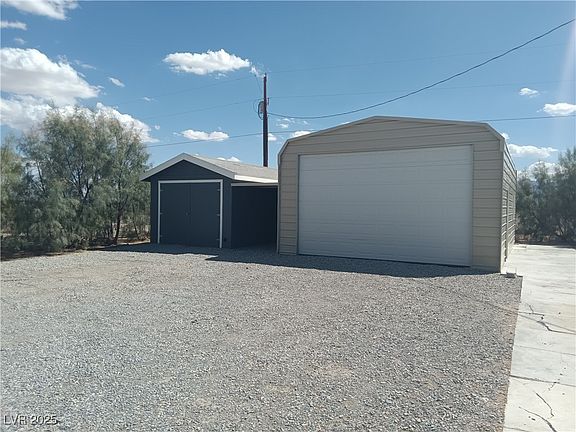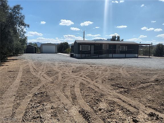Fixer Upper. Step into this charming 2 Bedroom 1 Bathroom manufactured home nestled on a fully fenced 0.92 Acre lot with mature trees and easy to maintain desert landscaping. With the added comfort of covered patio decks on both the front & back of the house, a detached 2-Car Garage along with a Well-House that can double as a large storage shed...this place is perfect for the person (or persons) who want to enjoy all of the peace & serenity that come easy here in the lovely desert town of Pahrump.