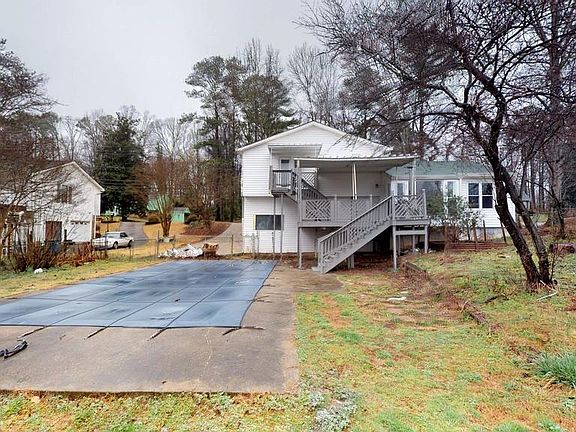 Bright and inviting 3-bedroom with a bonus room, 2-bath split-level nestled in Douglasville! This home shines with an white kitchen featuring stone countertops, perfect for everyday living and entertaining alike. Tons of natural light flow throughout the home, highlighting the fireside family room with vaulted ceilings and striking wood beams, creating a warm and inviting gathering space. Enjoy a bonus room that can be used as a second living room, home office, media room - you name it! The primary suite offers a walk-in closet and comfortable private balcony. Step outside to enjoy the large covered deck overlooking a fenced backyard with mature trees. An in-ground pool is on site and ready for restoration ($2,000 est), providing an opportunity to create your ideal summer retreat. With two fenced and gated yards, the possibilities are endless! A wonderful blend of comfort, character, and outdoor living-this home is a must-see! Book your tour today! Sold As-Is