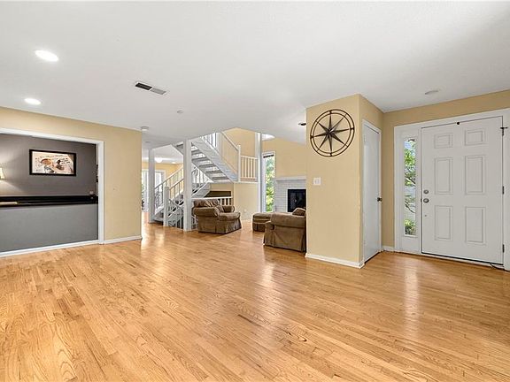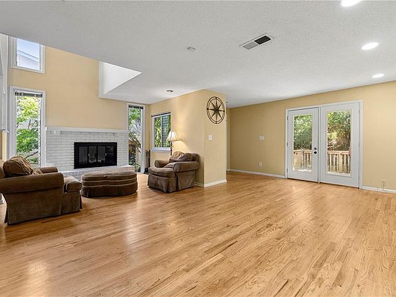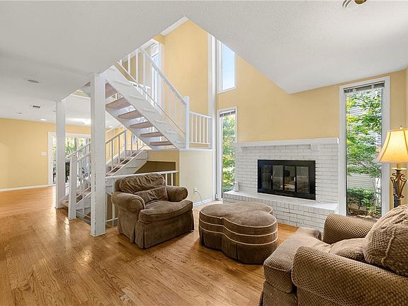 Welcome to this light-filled contemporary retreat in the heart of East Cobb! Soaring ceilings, floor-to-ceiling windows, and an open concept design create a bright, airy atmosphere throughout the main living area. Enjoy gatherings around the modern white brick fireplace or step outside to the spacious double decks, perfect for entertaining or relaxing among the trees. The kitchen features rich wood cabinetry, quartz-style countertops, tile backsplash, and stainless steel appliances. Upstairs, you’ll find a loft-style landing and generously sized bedrooms offering plenty of storage and versatility. Located in a quiet, established community just minutes from shopping, dining, and top schools.