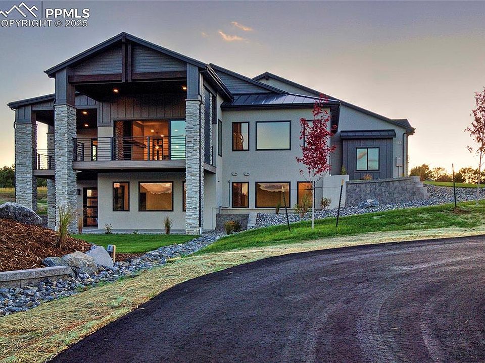 Luxury Colorado living awaits in this Walden Preserve home with a gourmet kitchen, spa-like primary suite, and expansive outdoor spaces. Set on a 1.01-acre landscaped lot with a water feature, this 4,773 sq. ft. home blends craftsmanship, comfort, and Colorado living, showcasing exquisite finishes throughout. Step inside to a bright, open floor plan with 10-foot ceilings, natural light from oversized windows, and seamless indoor-outdoor flow. The kitchen features high end appliances including; a gas range, double ovens, island seating, and walk-in pantry with second sink and dishwasher — perfect for everyday living and entertaining. The great room opens to the upper deck with a fireplace, and the dining room offers a second walkout, providing easy access for outdoor dining and entertaining. The main-floor primary suite is a private retreat with a 5-piece spa bath, walk-in closet with island, and private patio. Additional highlights include a dedicated home office, mudroom connecting to laundry and master, and secondary bedrooms in the basement. The finished walk-out basement has a wet bar, gas fireplace, recreation space, flex/gym room, laundry hookups, and a garage-style door to the lower patio for easy indoor-outdoor flow. Outdoor living features multiple seating and dining areas, landscaped grounds, and green space. Practical luxury continues with LVP flooring, plush carpet in bedrooms, a 4-car garage, and three fireplaces. Residents enjoy 4.6 miles of trails, two ponds, and a resurfaced pickleball court — all with backyard access. Nearby dining, shopping, and top schools in Lewis-Palmer School District 38 provide the perfect balance of privacy and convenience. Key Features: Finished Walk-Out Basement w/ Wet Bar & Flex Space. Expansive Decks & Patios for Outdoor Living. Landscaped Lot w/ Water Feature & Green Space. Walden Preserve Amenities; Trails, Ponds, Pickleball Court. This home captures the best of Colorado luxury living, quick possession possible.