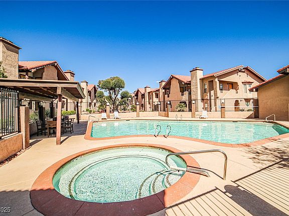 Beautifully renovated 2-bedroom, 2-bath condo in a secured gated community with resort-style amenities, including lush green belts and a swimming pool. Ideally located in the heart of the city, just minutes from the Strip and shopping, this upstairs unit offers multiple balconies with stunning mountain views and a glimpse of the Strip. The spacious open living room features a cozy fireplace, seamlessly connecting to a formal dining area and a step-saving kitchen with solid surface countertops and ample storage. The primary suite boasts a jetted tub and a separate shower. The jetted tub and appliances will transfer in "as-is" condition.