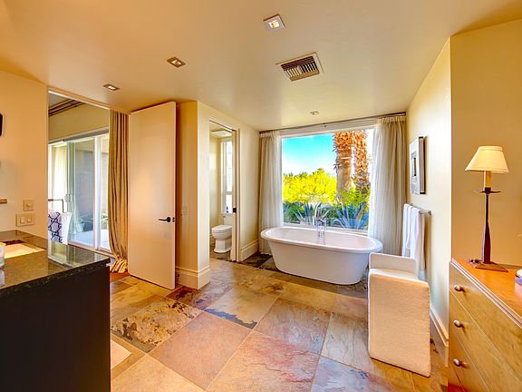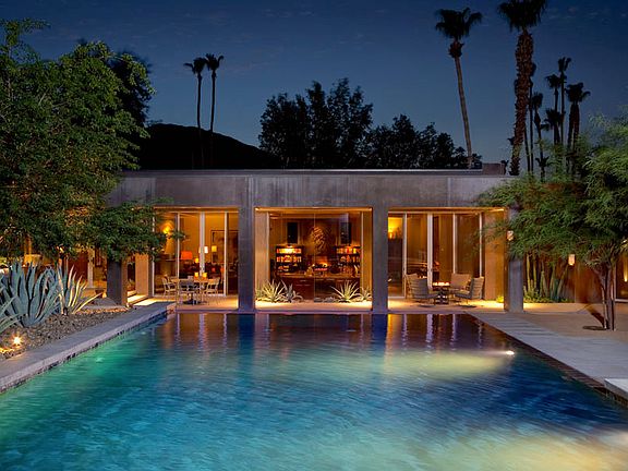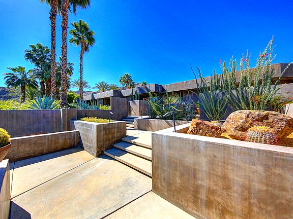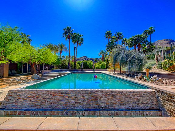Nestled into the hillside of Thunderbird Heights is this extraordinary estate in one of the deserts most prestigious trophy locations. Step into an alluring 'Amangiri-like' hideaway which offers sophisticated design incorporating the very best in surfaces and materials resulting in an architecturally significant habitat with uncompromising comfort and elegance. From the magnificent entrance through the windowed hallways you will be charmed by a fantastic view of the stacked stone infinity pool & secluded spa. This eco- friendly, solar powered residence is also focused on the tranquil private courtyard with its breathtaking views of the surrounding desert mountains. The open-air custom chefs kitchen is appointed with the very best of appliances. A grand entertainment / reception room with coffered ceilings and a sunken bar offers captivating vistas of your very private and personal desert oasis and all the possibilities of a relaxed desert way of life. There are four private bedrooms with en-suite bathrooms and intimate resort style patios. Each of which comes with down valley views. The grand, very spacious master suite is anchored by a cozy fireplace and opens up to the courtyard as well as to a private patio where the captivating desert views are ever present. A truly splendid master piece awaits you here, perfectly synchronized with the extraordinary desert landscape and a lifestyle to match. Dont delay making this your next desert home.