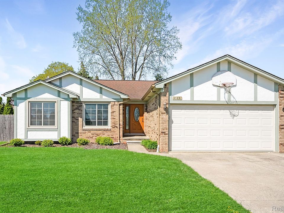 This cozy ranch-style beauty offers 3 bedrooms and 2 bathrooms just under 1500 square feet. Step into the spacious great room, where vaulted ceilings create an elegant atmosphere, perfect for relaxing by the fireplace on chilly nights. Easy-to-maintain vinyl flooring throughout this area with freshly painted walls. The kitchen is a standout feature, boasting beautiful white cabinets, granite countertops, and stainless steel appliances. Each of the three bedrooms is generously sized and thoughtfully designed, with the master bedroom featuring a walk-in closet and a private entrance to the bathroom. All three rooms have updated plush carpeting for that extra cozy feel. The basement has extra high ceiling and endless potential await your personal touch to turn it into the ultimate hangout spot or entertainment area. Outside, a large deck offers the ideal spot for soaking up the sunshine or hosting BBQs with a bonus fire pit. This prime location puts you right next to The Tomlinson Arboretum, a peaceful 25-acre sanctuary with walking paths and bike trails, perfect for nature enthusiasts. Across the street, you'll find the Clinton-Macomb Library and Clinton Township Civic Center, where you can enjoy a splash pad, playground, pickleball courts, dog park, and wooded walking trails. Plus, in the summer months, you can take advantage of the summer concert series and Fourth of July fireworks, ensuring there's always something fun to do just steps away from your front door. Come experience the best of suburban living in this charming home!!