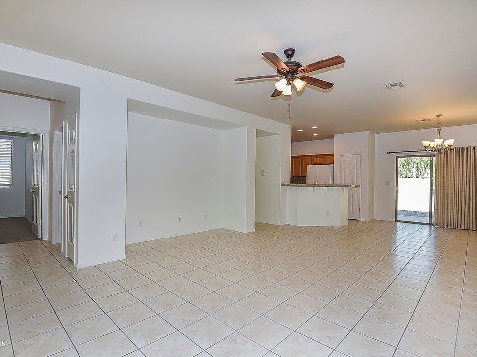 Known as the ''Charm'' model, this single-level floor plan offers an open layout ideal for entertaining. Kitchen includes granite counters and breakfast bar. Combination of tile flooring in living areas and carpeting in bedrooms. Comes with washer, dryer, dishwasher, disposal, microwave, range, and refrigerator. The primary suite is separated from the other two bedrooms for added privacy. If you don't know Anthem and its amenities- you don't know what you are missing. Community has pools, workout area, schools, lots of playqrounds and so much more. Outlet stores and Walmart are close by, too. Sorry no cats!Large gravel back yard for minimum care.