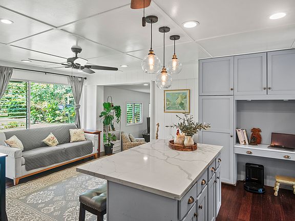 Well appointed, furnished home in Omao. Minutes from Poipu, convenient to Lihue, and easy drive to PMRF/west side. PV (photo voltaic) panels and TESLA battery so very low electric bills. Brand new appliances - gourmet gas range, refrigerator and dishwasher. Front loading washer (new) and dryer inside. Recently renovated kitchen and bathrooms. Ceiling fans in all rooms. Covered lanai with teak table/chairs, couch and lounge chairs. Pets MAY be considered on case-by-case basis with strict criteria/conditions. Tenant pays electric, gas/propane, WiFi and lawn care. Water and trash included. Renters insurance and credit/income check required. One year lease and one month security deposit. Avocado tree, bananas and papayas on property. Weber charcoal grill included. Some decorative items in photos may not be included. Photos by Blue Fern Photography. No smoking. Renter responsible for electric, gas, WiFi, and lawn/yard maintenance. Owner pays water and trash. First month's rent and security deposit due at signing. One year lease.