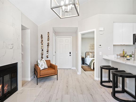 Fully remodeled, this Meadow Hills residence is enveloped in fresh updates. Expansive windows draw abundant natural light into an open and airy layout showcasing towering vaulted ceilings and beautiful new flooring. Contemporary new lighting elevates the living and dining areas as a tiled floor-to-ceiling fireplace glows with warmth and ambiance. Sliding glass doors open to a large outdoor balcony, perfect for enjoying outdoor relaxation. Peer over a sleek peninsula with seating into a stylish kitchen boasting new waterfall countertops, all-white cabinetry and stainless steel appliances. A laundry area with a stackable washer and dryer set adds ease to daily routines. Escape to the primary bedroom beaming with abundant brightness from a wide picture window. A versatile secondary bedroom offers the perfect setting for a private home office or guest accommodation. The bedrooms are complemented by an updated full bath with modern fixtures. Additional upgrades include new paint and doors throughout. The community has a pool and plenty of parking for guests and family.
