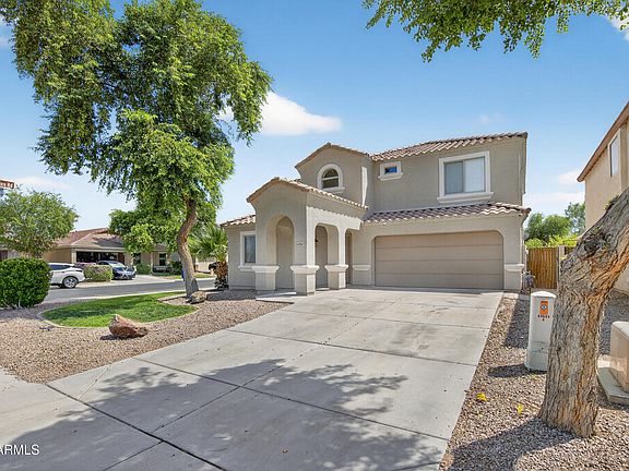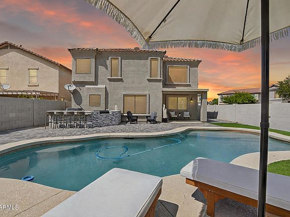 Welcome to this stunning 4-bed, 3-bath, 1,849 sq. ft. home on a premium corner lot in the desirable Homestead North community of Maricopa! Enjoy your private pool, low-maintenance turf, large pavered area, and a built-in outdoor kitchen complete with BBQ, bar seating, and Ramada—perfect for entertaining! Inside, you'll love the wood-look tile floors, brand-new stainless steel appliances, rich wood cabinets, and a walk-in pantry. The primary suite features a huge walk-in shower with dual shower heads, double vanity, and a walk-in closet. Community amenities include lakes, walking/biking paths, playgrounds, Ramadas, and a basketball court.