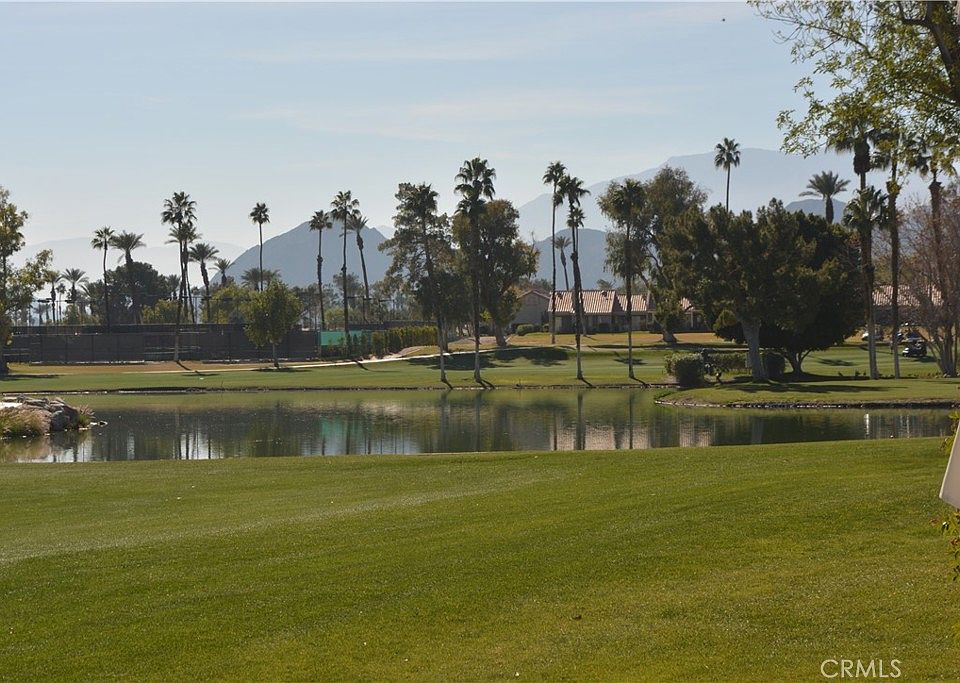 Situated on a premium lot, this residence offers one of the most desirable vantage points in the community. The expansive and oversized rear patio provides an ideal setting for outdoor dining and lounging, with unobstructed views of the 18th green framed by dramatic mountain and lake backdrops. Tinted sliders enhance comfort and energy efficiency while preserving the stunning scenery. This highly sought-after floor plan is offered turnkey/furnished, providing immediate enjoyment and convenience. Recent updates include a new A/C system, new split A/C, and a new water heater, ensuring peace of mind and modern comfort. The property is located within a guard-gated community, offering security and a true resort-style lifestyle. Residents enjoy close proximity to the clubhouse, which features dining, cocktails, and scheduled entertainment. The community pool and spa are less than a one-minute walk away. Golf, pickleball, tennis, and bocce ball are all accessible within the resort. Beyond the grounds, the location is ideal for desert living—near world-class dining, shopping, and major event venues such as the BNP Paribas Open and Coachella/Stagecoach festivals. Short-term rental potential with prior history adds an attractive investment component. Downtown Palm Springs is approximately 14 miles away, offering additional dining, culture, and entertainment. This property seamlessly blends an exceptional setting, desirable amenities, and a refined resort lifestyle—an opportunity not to be missed.