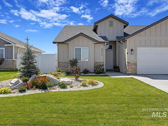Welcome to this stunning 1,501 square foot residence, designed and built by Riverfront Custom Homes. This home features a spacious three-car garage, three bedrooms, and two full baths. Upon entering, you'll be impressed by the ten-foot ceilings in the entry, family room, and dining, creating a sense of openness and grandeur. The home is filled with natural light, thanks to the large windows that adorn the living spaces. The kitchen is a highlight, offering custom alder cabinetry, a corner pantry, a large island, and elegant quartz countertops. It's a perfect blend of style and functionality, ideal for both everyday cooking and guests. This home is also designed with accessibility in mind, featuring wide hallways and 36" wide doors and a roll-in tiles shower, making it ideal for wheelchair users. The east facing back yard will allow for many afternoon spending time in the shaded back yard. The exterior boasts Masonite wood siding complemented by beautiful stone accents, adding to its curb appeal. Pics similar