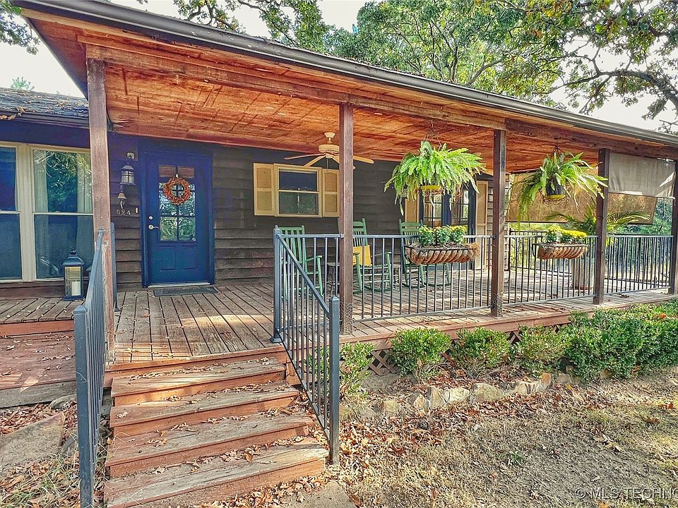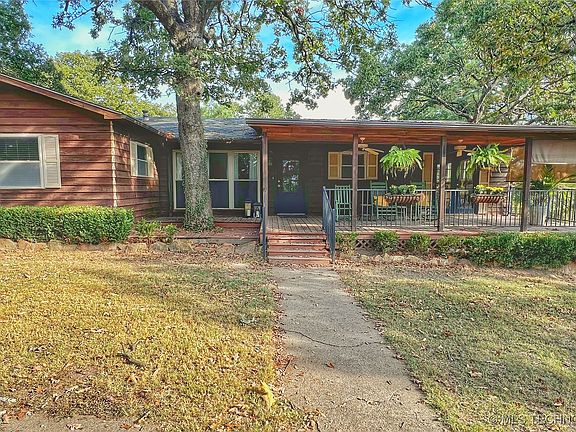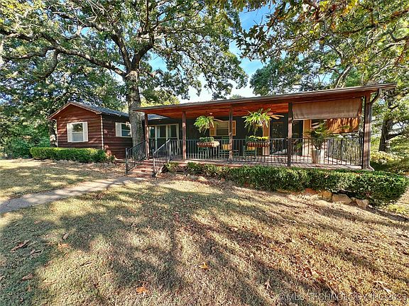 Welcome to this beautiful property nestled on approximately 31 +/- acres. The home is move-in ready with space indoors and out. Step inside to a beautifully updated interior blending timeless craftsmanship with modern upgrades. Refinished wood floors flow through much of the home, bringing warmth and character to each space. The kitchen, gathering room, and hall bathroom feature durable tile flooring, creating a seamless transition between high-traffic areas. The kitchen is a true centerpiece, showcasing granite countertops, a granite sink, and thoughtfully added barn wood accents that add rustic charm. Overhead, new light fixtures illuminate every space with a soft, inviting glow. The kitchen opens comfortably to the gathering room, where freshly painted walls add natural richness and warmth. The fireplace has been beautifully restored, with the original brick brought back to life. A solid oak mantel now adds an elegant focal point, perfect for cozy evenings at home. Additional touches of modern style and function abound from granite countertops and porcelain sinks in both bathrooms, to new faucets, freshly painted bedrooms. Every improvement reflects care and quality craftsmanship, creating a home that feels both refreshed and enduring. Outdoors, the property truly shines. Enjoy peaceful mornings, afternoons by the sparkling swimming pool, and evenings relaxing beside the outdoor fireplace. Gardening enthusiasts will appreciate the greenhouse, perfect for year-round growing. The surrounding acreage offers a pond, open pasture, mature trees, and room for recreation, livestock, or simply soaking in the natural beauty. Additional features include a well-maintained driveway, fencing, and storage or utility structures for convenience. This property offers a rare opportunity to enjoy privacy and space while 15 minutes to the Harbor and 35 minutes to Downtown Tulsa. Discover serene country living with modern updates and outdoor amenities that make this home stand out.