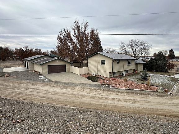 Great location in Greybull, WY! Close to everything with easy commute to Cody and less than 30 minutes from endless recreation of the Bighorn Mountains! Enjoy morning walks on the dike along the Bighorn River and evenings under the shade of mature trees in the secluded back yard. Space for everyone! Spread out in this tri-level home with bedrooms on every level...one bedroom with large walk-in closet just off the entry on the main level, two bedrooms in the basement, and master bedroom on the top level. Additional amenities include: 24 kW Generac generator, large kitchen with plenty of cabinets, beverage cooler, gas range, and pantry. Master bedroom with two closets, heated floors in bathroom, and tile shower. Large deck overlooking the yard is great for relaxing and entertaining. New boiler and tankless water heater. Plenty of room for all your toys: TWO oversized 2-stall garages + tool shed. Basement is partially finished. Contact listing agent for details and disclosures. Garage and shed dimensions approximate, square footage per county. Agent related to sellers.