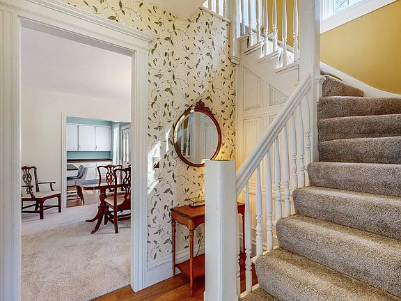 SUPERB LOCATION – Great family home sits on almost half-acre lot, adjacent to Florence Park, river bridge and trails leading to Bear Cave park and amphitheater. Loads of old home charm: stained glass and beveled windows, woodwork, open staircase and brick fireplace. New kitchen countertops/sink. Newer windows, siding, furnaces and updated wiring/panel. Main floor primary bedroom has access to deck overlooking private backyard, brick patio/fire pit and gorgeous open area leading to park. 12 x 16 storage shed in backyard. Three bedrooms on upper level with full bathroom. Oversized 2-car garage with upper level for storage. Nice neighborhood, close to schools, aquatic center and parks.